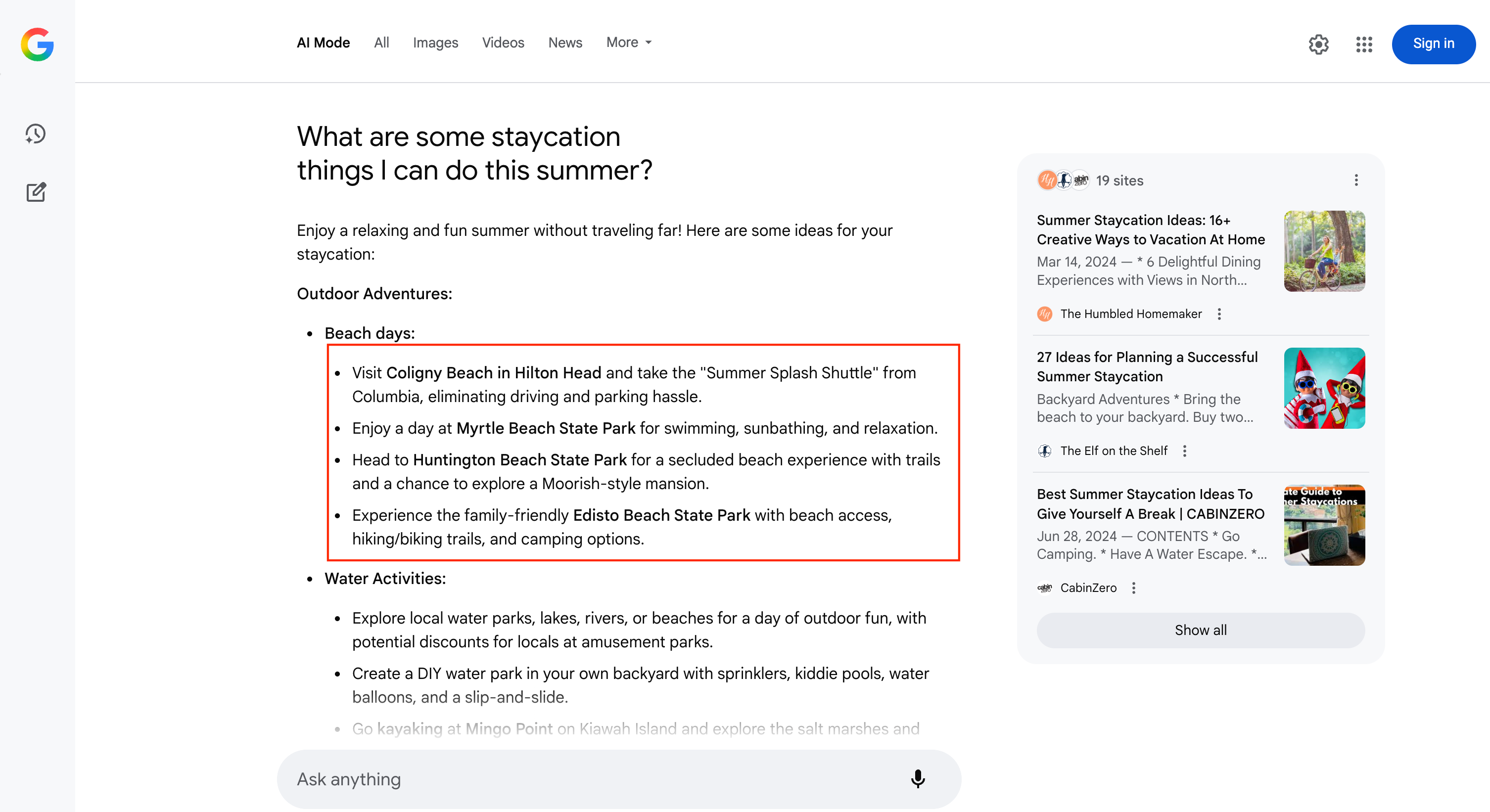 "snippet":"Have a Water Escape: Visit a local water park, pool, lake, or beach to cool off and have fun in the sun. You can also create your own water park at home with sprinklers and water balloons."