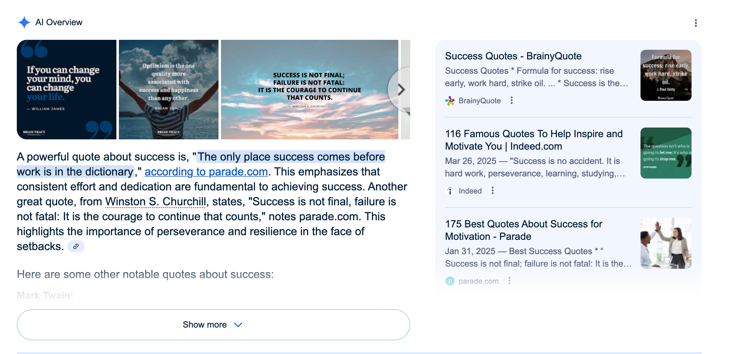 AI Overview Nested List Results