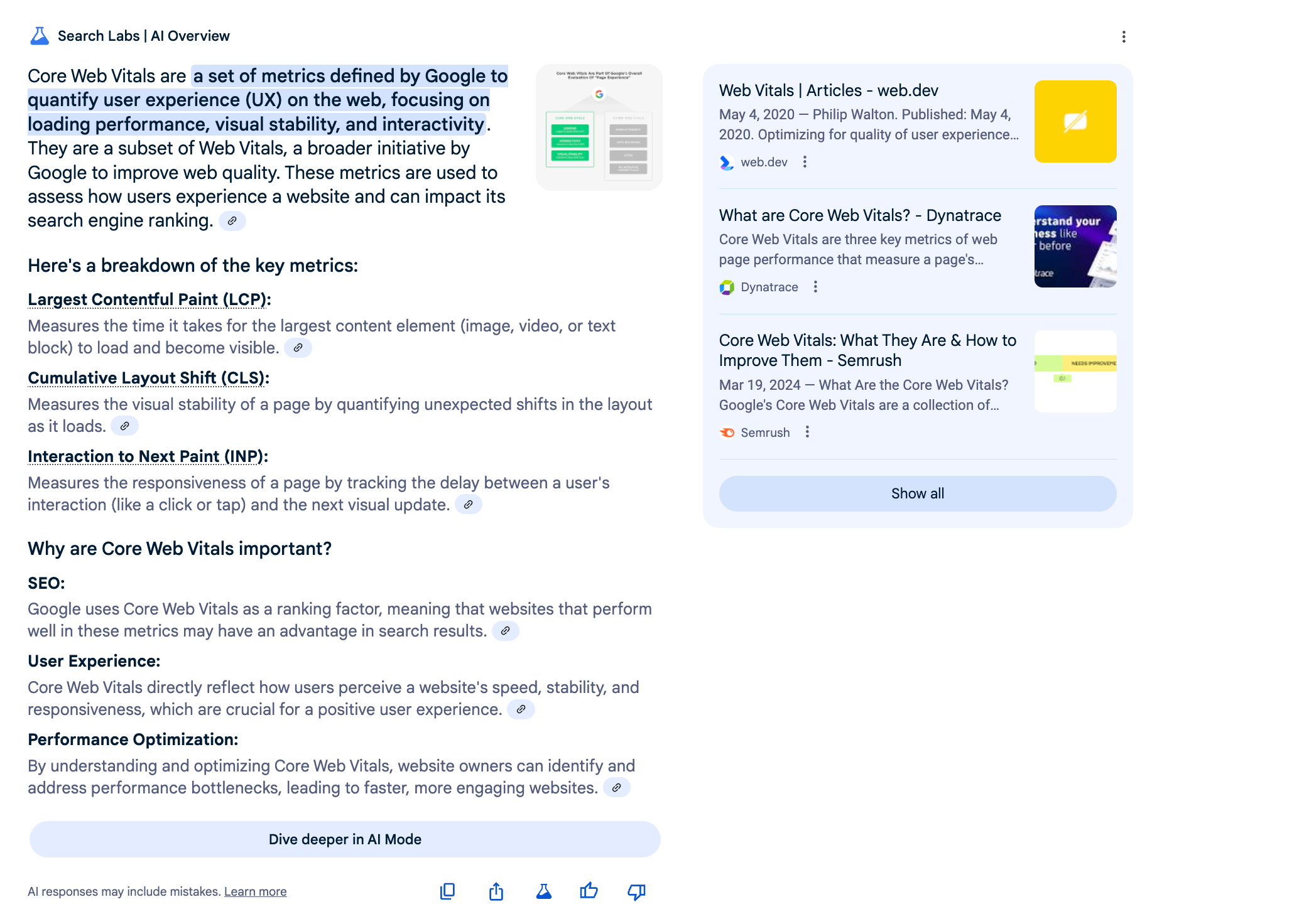 "snippet":"Why are Core Web Vitals important?"