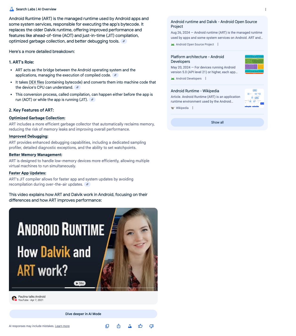 "snippet":"This video explains how Dalvik and ART work in Android:",